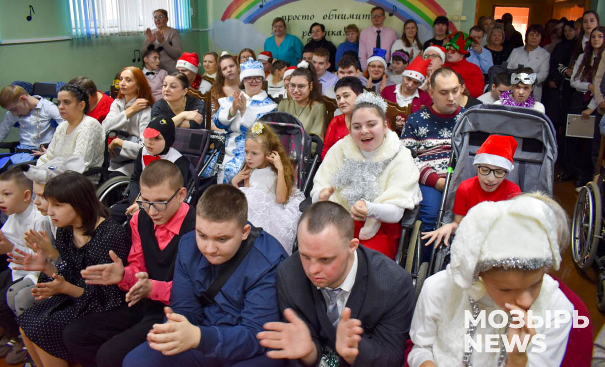 Для воспитанников Мозырского центра медицинской реабилитации для детей-инвалидов и молодых инвалидов с психоневрологическими заболеваниями «Радуга» состоялось новогоднее представление с участием сказочных персонажей, в роль которых талантливо перевоплотились сотрудники учреждения и родители воспитанников.