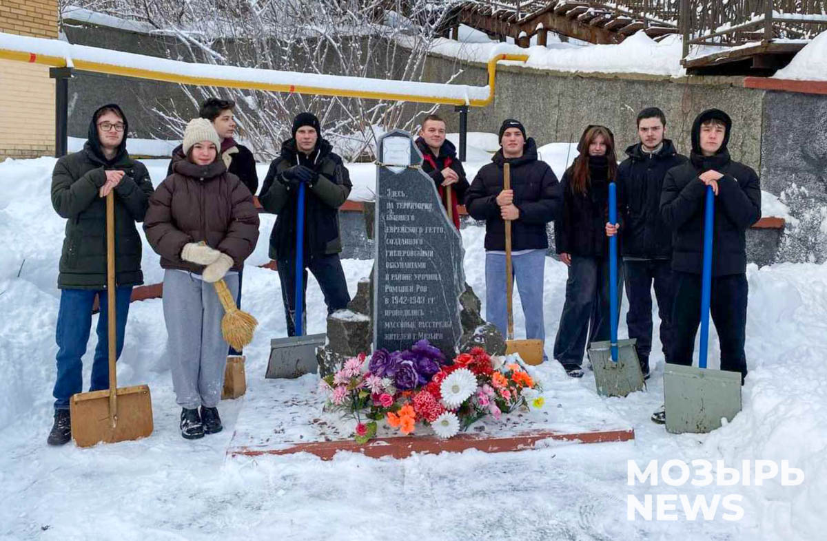 На днях волонтеры отряда «Твори добро» и студенты расчистили от снега территорию вокруг памятника еврейского гетто «Ромашов Ров». Усердно потрудившись, молодые люди минутой молчания почтили память земляков, которые были уничтожены гитлеровскими оккупантами в годы Великой Отечественной войны.