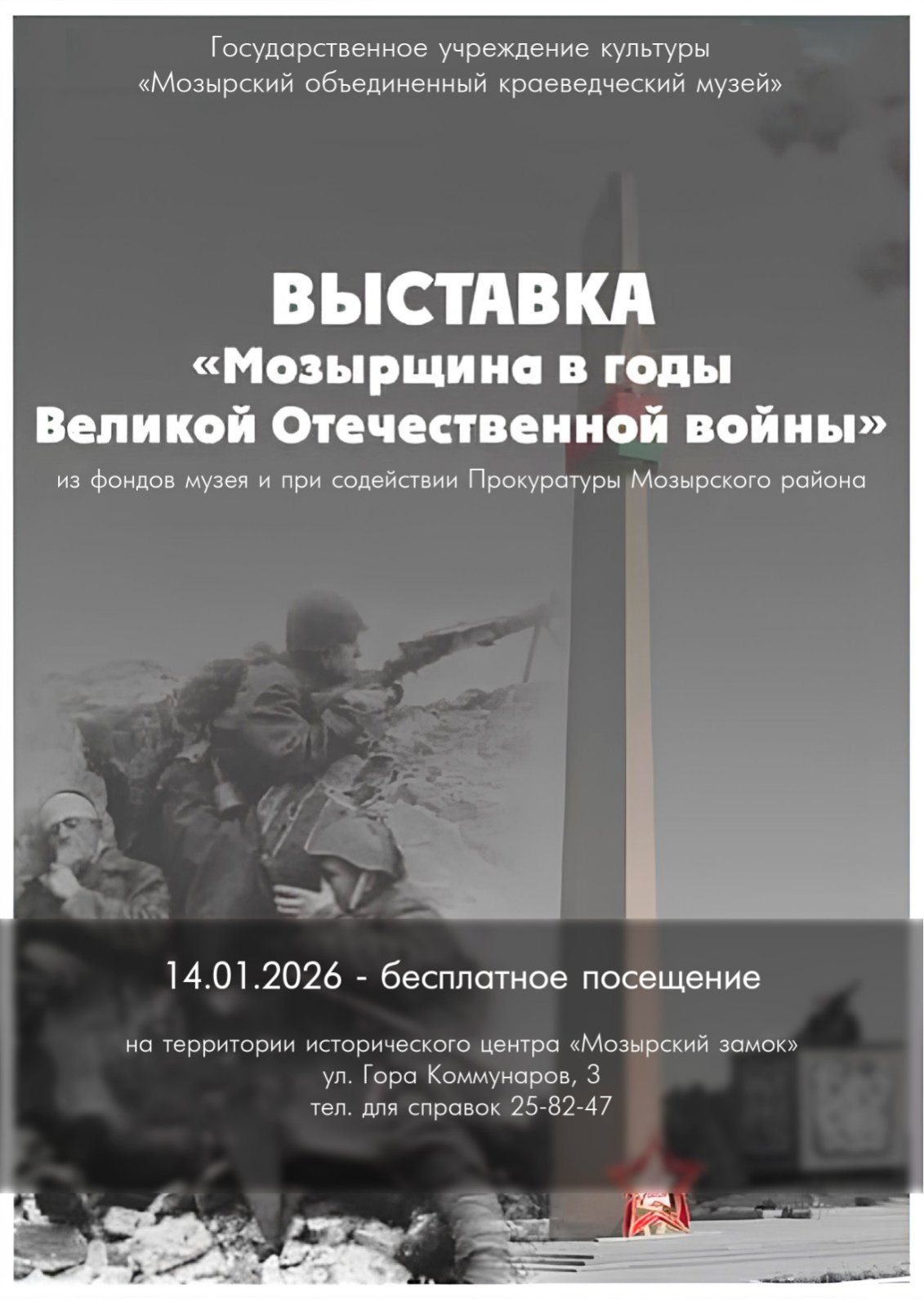 14 января в истории Мозырщины – важная и знаковая дата: 82 года прошло с того времени, когда в ходе Калинковичско-Мозырской операции войсками 61-й армии Белорусского фронта под командованием Константина Рокоссовского наши храбрые воины освободили Мозырь от немецко-фашистских захватчиков. Мы должны знать и помнить этот день.
