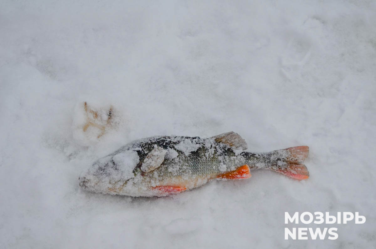 Спускаемся на лед. Темные фигуры рыболовов на белоснежной глади сразу бросаются в глаза. Наш главный вопрос: все ли они в спасательных жилетах? Недалеко от берега замечаем группу любителей зимнего лова. У ног одного из них – рыбка: скромный, но уже пойманный улов.