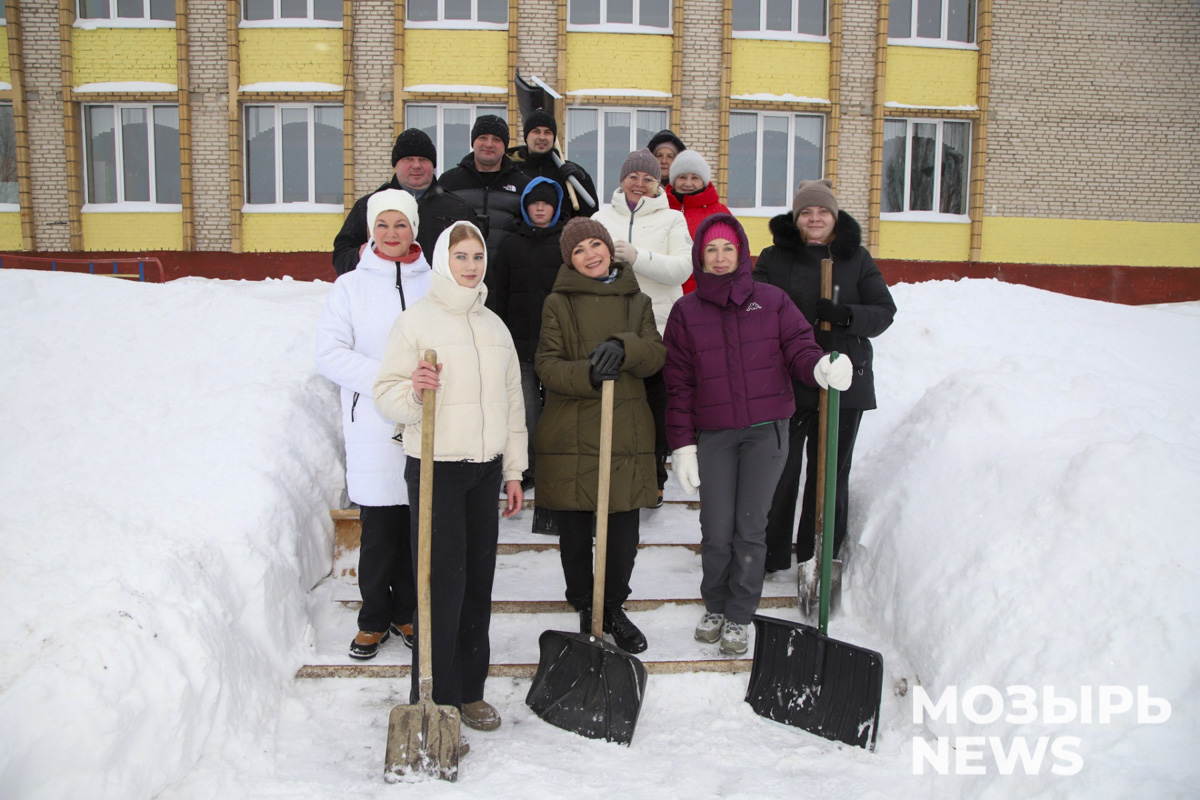 Областной субботник по уборке снега активно поддержали педагоги и родители учащихся мозырской школы № 12