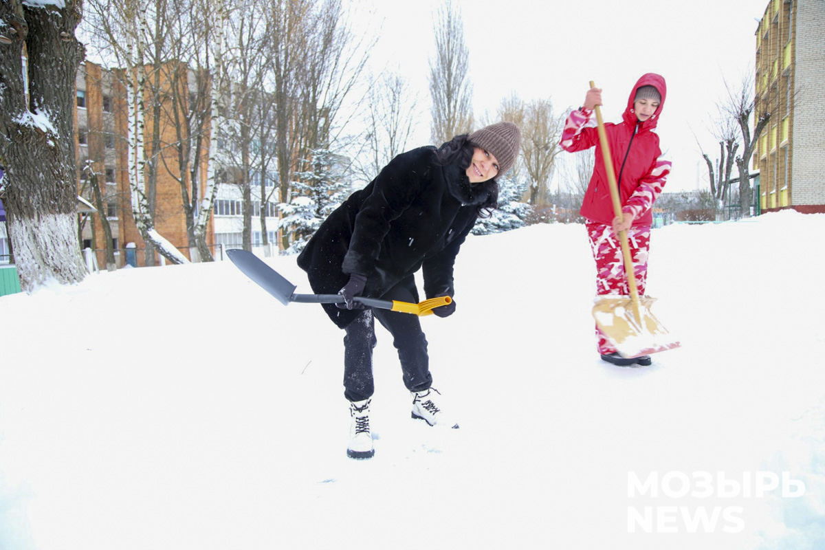 Люди, взяв в руки лопаты, проявили желание помочь в расчистке своих дворов, подъездов, пешеходных дорожек и парковочных мест от снежных завалов, и это – очень позитивный момент. Активно сегодня работа кипела и на территории мозырской средней школы № 12. Заводные музыкальные ритмы, доносившиеся из динамиков, только способствовали продуктивному и плодотворному труду. Кто-то из родителей прихватил из дома свои лопаты, другие использовали школьный инвентарь. Трудились дружно, в охотку. Тех, кто слегка замерз, поили горячим ароматным чаем и угощали вкусным печеньем.