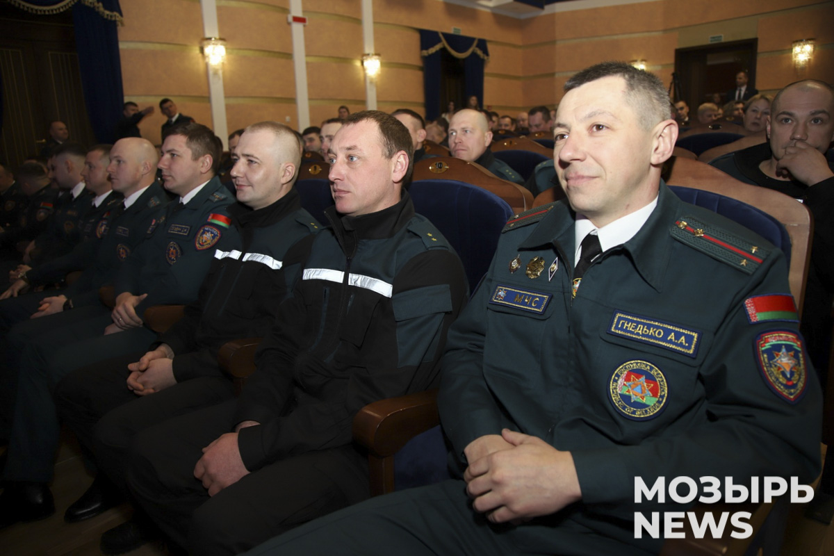 Сегодня в зале собрались работники и ветераны МЧС. В качестве почетных гостей присутствовали военный комиссар Мозырского, Ельского и Наровлянского районов Игорь Чайка, председатель епархиального отдела по взаимодействию с Вооруженными Силами и воинскими формированиями Республики Беларусь иерей Александр Бушлеков, начальник Мозырского ОВД Дмитрий Кротов, экс-начальник Гомельского областного управления МЧС Александр Лужков.