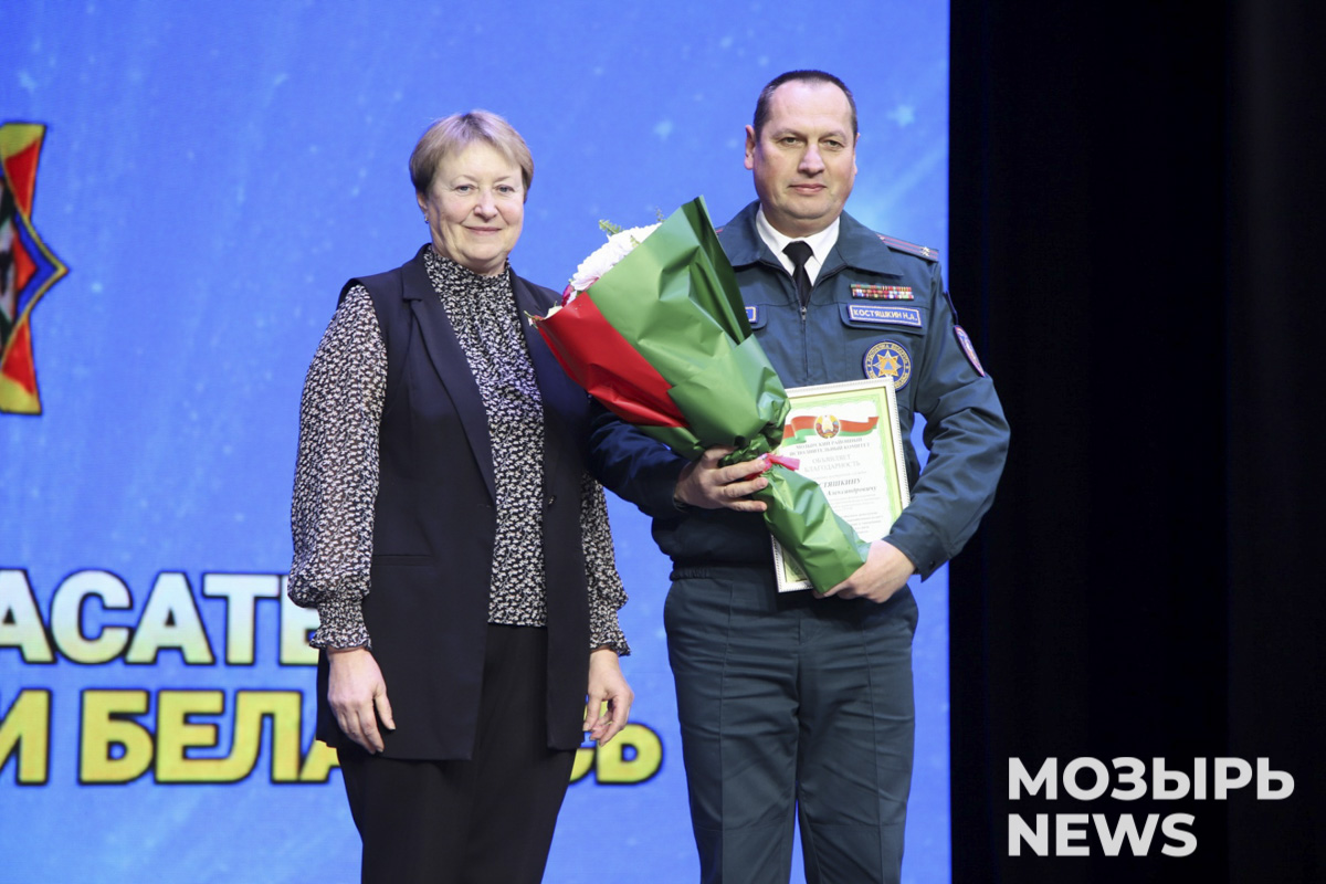 Галина Кудина, вручая Дмитрию Александровичу приветственный адрес от председателя Мозырского райисполкома Елены Павлечко, отметила: «Ежедневно вы стоите на страже безопасности. Низкий поклон вам за вашу работу и нашу безопасность».