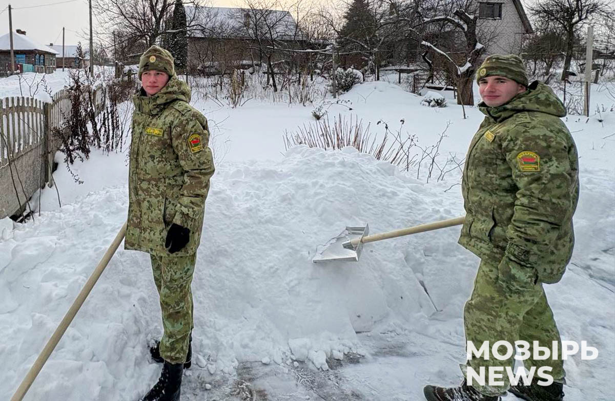 Группа пограничников отправилась по адресам в агрогородке Прудок, где проживают одинокие инвалиды, и с энтузиазмом принялась за работу. Снег убрали не только с дворовых территорий, но и с подъездных путей и дорожек.