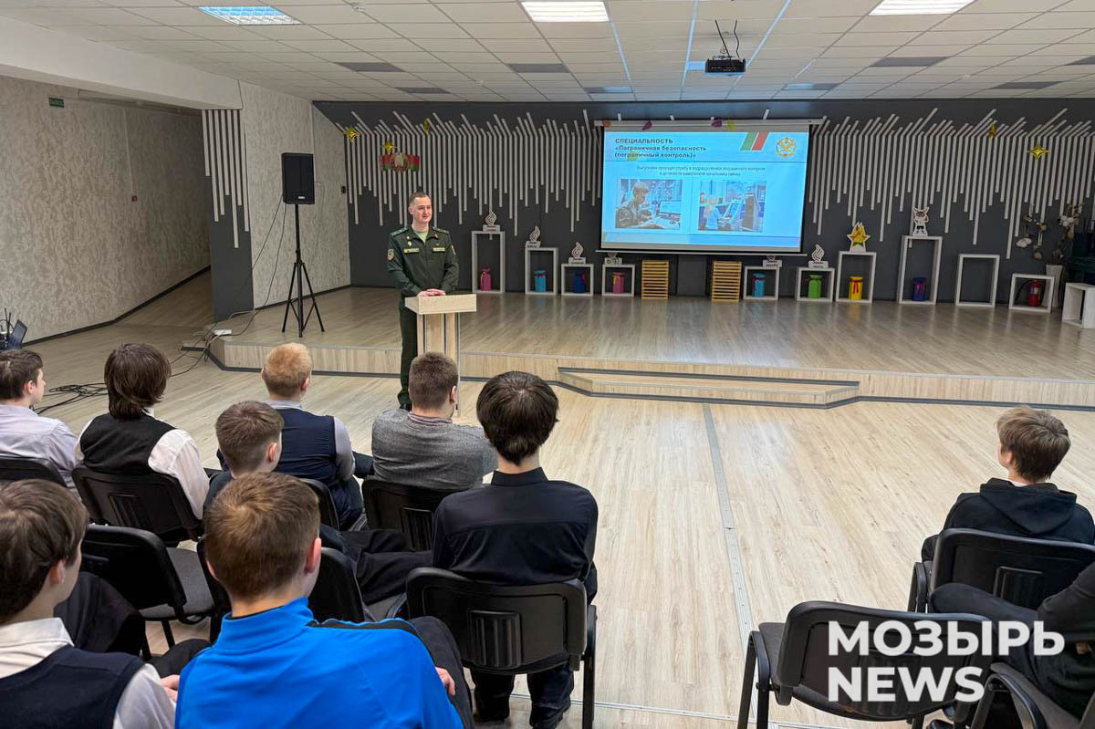Старший офицер отдела боевой подготовки Мозырского пограничного отряда Андрей Яцевич на конкретных примерах рассказал, что такое патриотизм в действии, какими качествами должен обладать настоящий защитник Родины и почему служить на границе почетно и ответственно. Андрей Александрович объяснил ребятам, как поступить в Институт пограничной службы, какие экзамены и нормативы нужно для этого сдать, как проходит обучение и служба, какие перспективы ждут офицеров-пограничников.