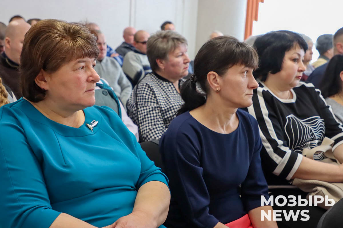 В собрании принимают участие председатель Мозырского райисполкома Елена Павлечко, заместитель председателя – начальник управления сельского хозяйства и продовольствия Василий Климович, председатель Мозырской районной организации профсоюза работников АПК Александр Шоба.