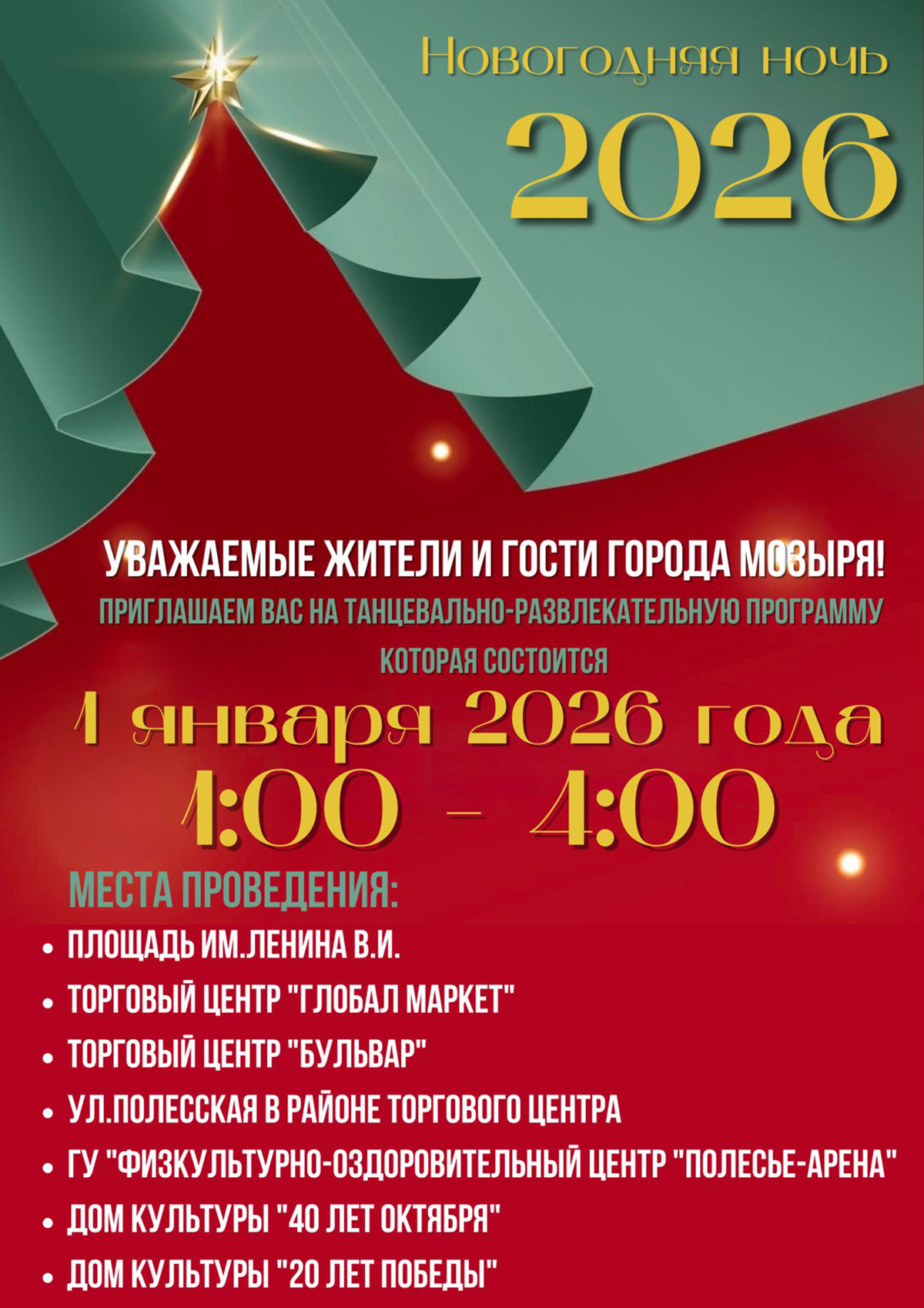 Новогодние мероприятия с 1:00 до 4:00 будут проходить:
